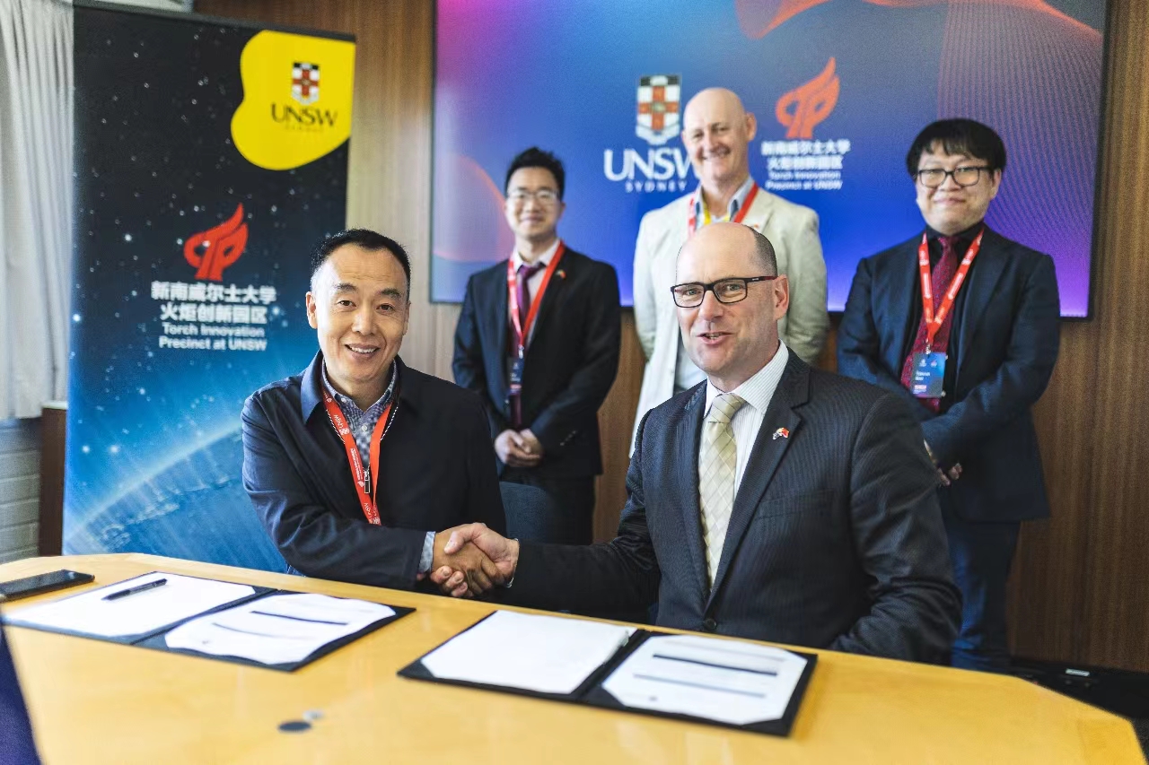 2023年10月10日,公司董事长贺春(左一)一行出席2023火炬创新博览会上,并与新南威尔士大学基于CRISPR分子诊断技术平台展开——传染病、肿瘤相关标志物、经济动物诊断产品等多方位合作。