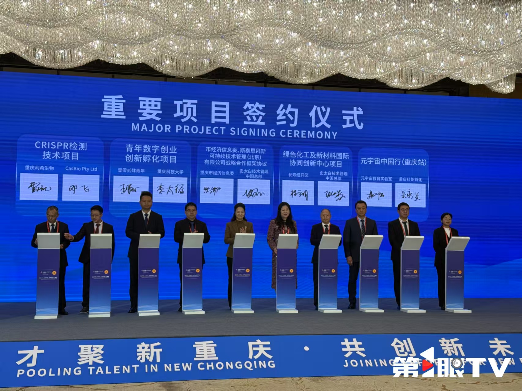2023年12月16日,在重庆国际人才交流会上,利希生物制品(重庆)有限公司董事长贺春(右一)出席会议并与新南威尔士大学生物医学工程学院、重庆大学生物工程学院就“基于CRISPR技术的DNA和RNA分子筛选与检测”完成合作签约。